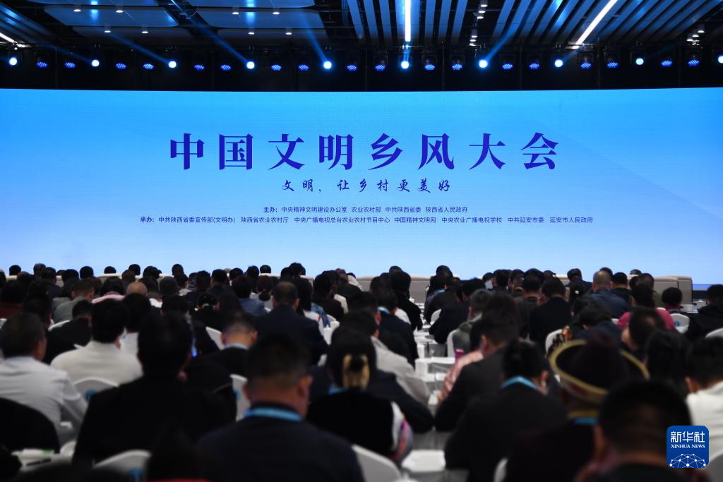 这里是10月29日召开的中国文明乡风大会的主会场。中国文明乡风大会于10月29日至30日在陕西省延安市举行,主题是“文明乡村建设”。大会由中央精神文明建设办公室、农业农村部、中共陕西省委、陕西省人民政府联合主办。它分为三个主要部分。首先,总部将有活动。同时设立四个分指挥部,围绕进村入户、深入推进党的创新理论四个主题,深化乡村风俗传承、发展以“村名”运营文化体育,保护和传承乡村文化遗产。二是集中呈现全国改变习惯的优秀文化艺术节目。第三个活动是“乡村BA”,这是一项展示大众文化体育活动“乡村称号”成果的大众体育交流活动。新华社记者 张博文 供图