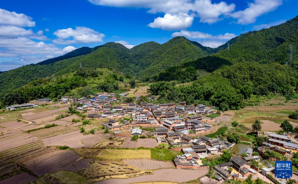 这是10月23日拍摄的孔雀坪村(无人机照片)。孔雀坪村位于云南省普洱市宁瓜哈尼自治县漠黑镇。这里曾经是茶马古道上的一个驿站。村里青石古路、古建筑见证了茶马古道的繁荣。近年来,孔柯坪村以保护传统建筑为基础,发展乡村旅游,吸引游客休闲旅游,感受茶马古道的悠久历史和独特魅力。新华社记者 陈新波 供图。